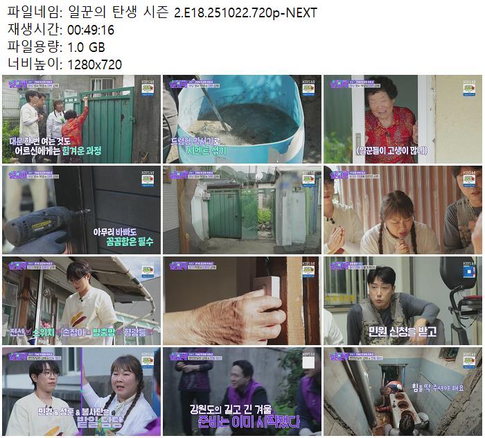 일꾼의 탄생 시즌 2.E18.251022.720p-NEXT.mp4 1 G 00:49:16 1280x720