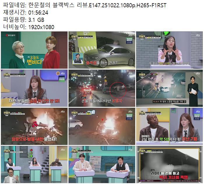 | 한문철의 블랙박스 리뷰.E147.251022.1080p.H265-F1RST.mp4 | 3.1 G | 01:56:00 | 1920x1080 |