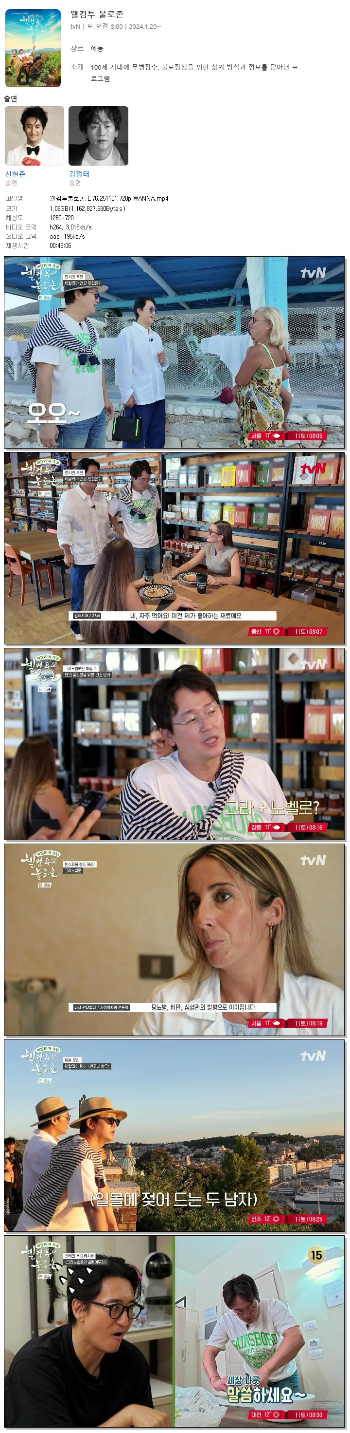 | [TVN] 웰컴투불로촌.E76.251101.720p.WANNA[신현준, 김정태].mp4 | 1.1 G | 00:48:06 | 1280x720 |