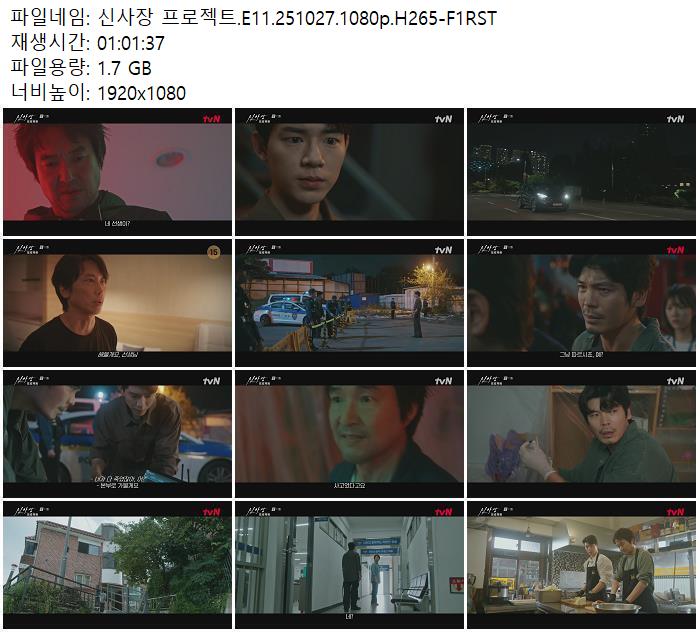 | 신사장 프로젝트.E11.251027.1080p.H265-F1RST.mp4 | 1.7 G | 01:01:00 | 1920x1080 |