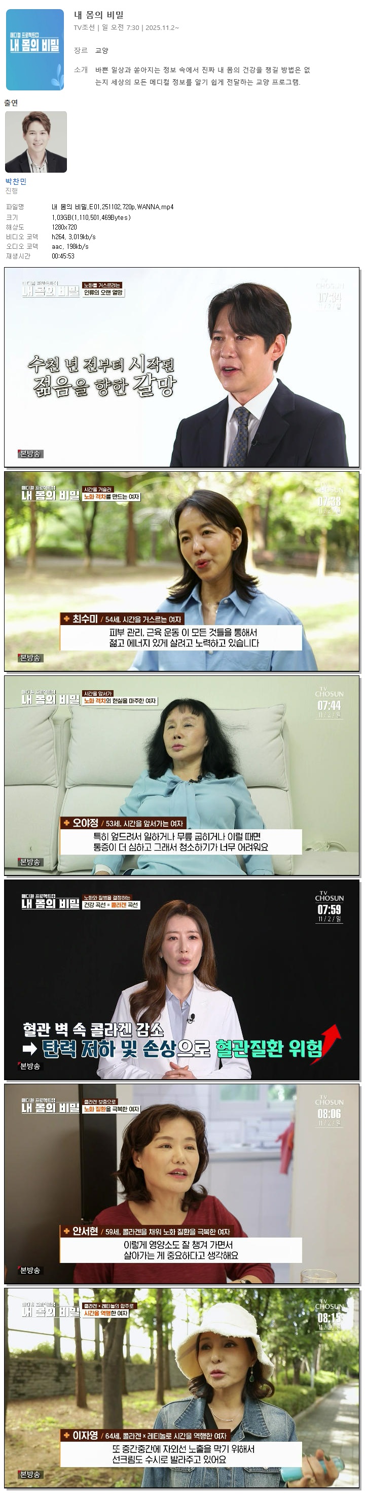 | [TV조선] 내 몸의 비밀.E01.251102.720p.WANNA[박찬민].mp4 | 1 G | 00:45:53 | 1280x720 |