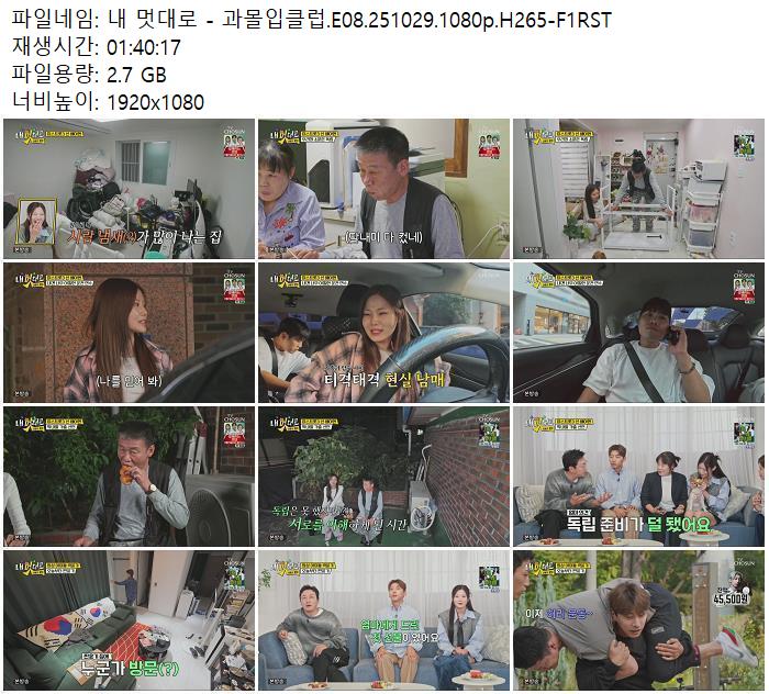 | 내 멋대로 - 과몰입클럽.E08.251029.1080p.H265-F1RST.mp4 | 2.7 G | 01:40:00 | 1920x1080 |