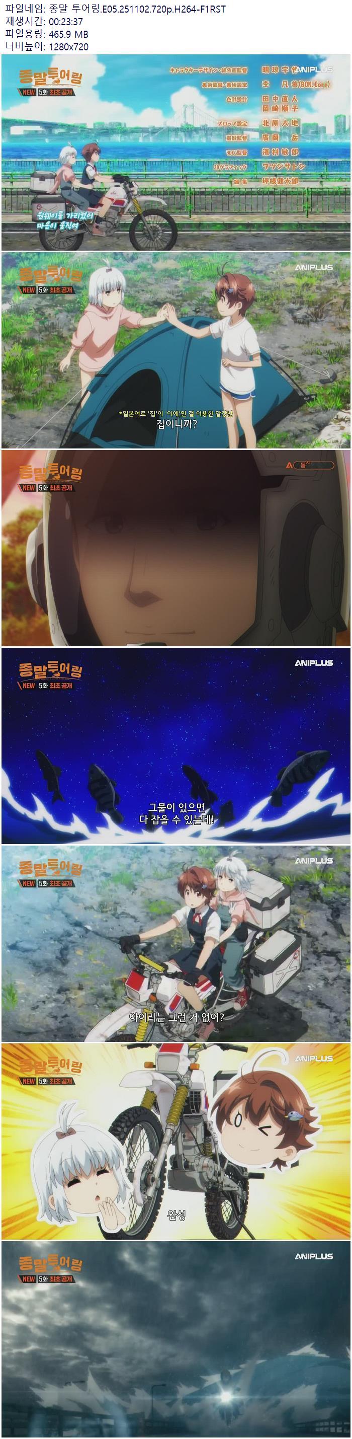 | 종말 투어링.E05.251102.720p.H264-F1RST.mp4 | 465.9 M | 00:23:37 | 1280x720 |