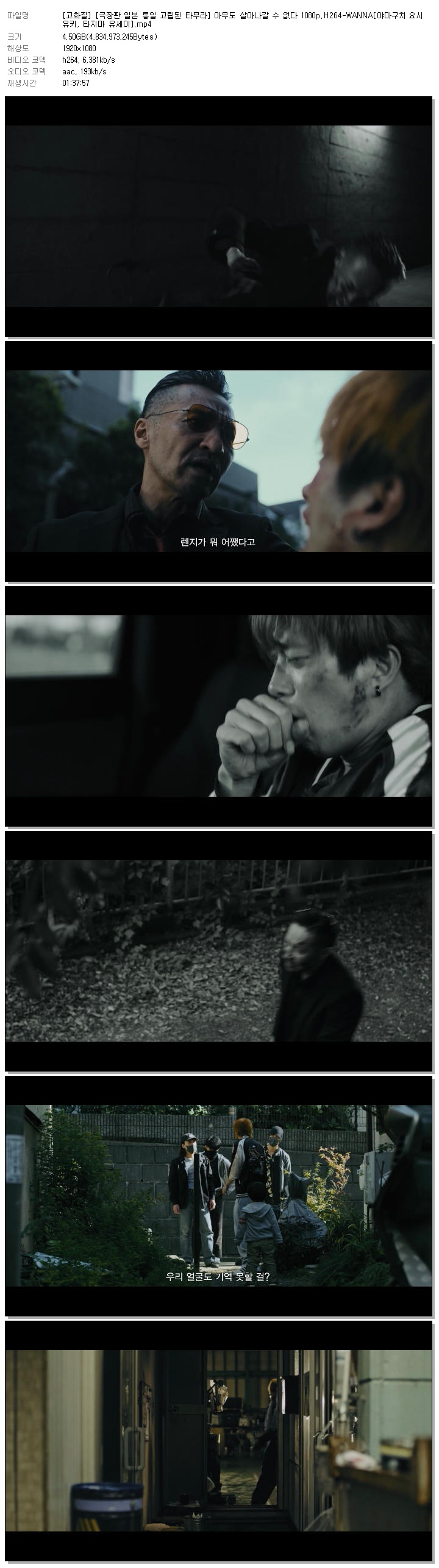 | [고화질] [극장판 일본 통일 고립된 타무라] 아무도 살아나갈 수 없다 1080p.H264-WANNA[야마구치 요시유키, 타지마 유세이].mp4 | 4.5 G | 01:37:57 | 1920x1080 |