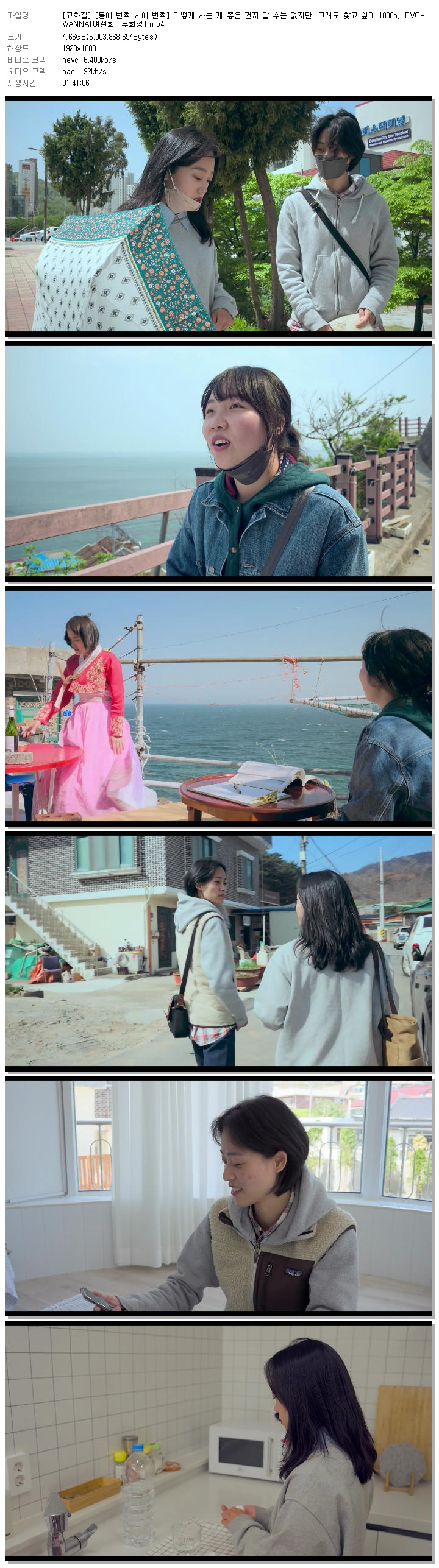 | [고화질] [동에 번쩍 서에 번쩍] 어떻게 사는 게 좋은 건지 알 수는 없지만, 그래도 찾고 싶어 1080p.HEVC-WANNA[여설희, 우화정].mp4 | 4.7 G | 01:41:06 | 1920x1080 |