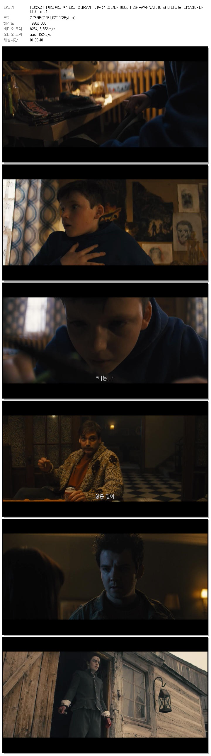 | [고화질] [세일럼의 밤 피의 술래잡기] 장난은 끝났다 1080p.H264-WANNA[에이사 버터필드, 나탈리아 다이어].mp4 | 2.7 G | 01:35:48 | 1920x1080 |