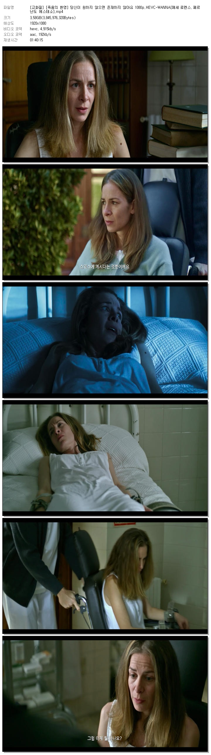 | [고화질] [죽음의 환영] 당신이 원하지 않으면 존재하지 않아요 1080p.HEVC-WANNA[메세 로렌스, 페르난도 에스테소].mp4 | 3.6 G | 01:40:15 | 1920x1080 |