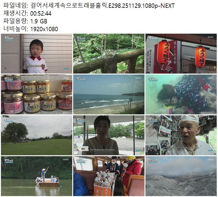 | 걸어서세계속으로트래블홀릭.E298.251129.1080p-NEXT.mp4 | 1.9 G | 00:52:44 | 1920x1080 |