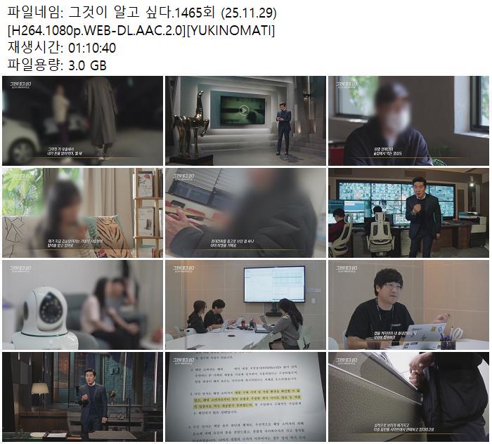 | 그것이 알고 싶다.1465회 (25.11.29) [H264.1080p.WEB-DL.AAC.2.0][YUKINOMATI].mkv | 3 G | 01:10:00 | 1920x1080 |