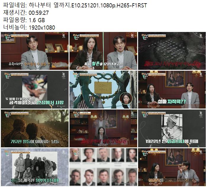 | 하나부터 열까지.E10.251201.1080p.H265-F1RST.mp4 | 1.6 G | 00:59:27 | 1920x1080 |