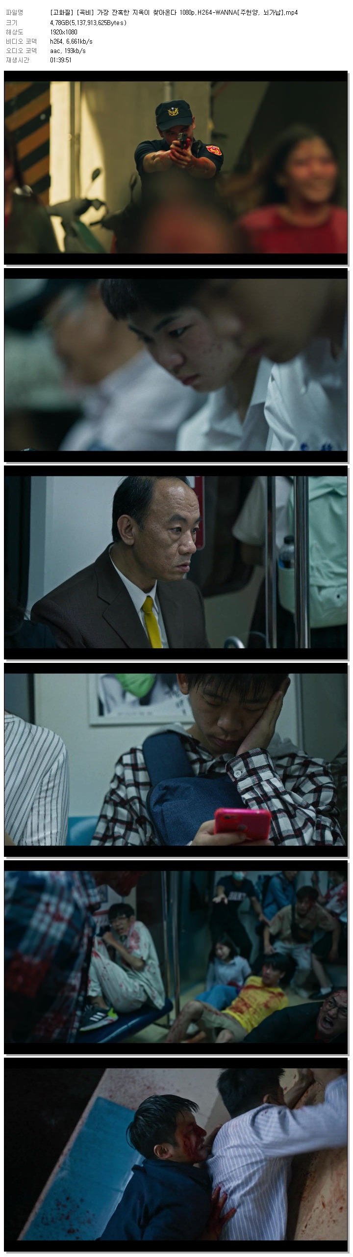 | [고화질] [곡비] 가장 잔혹한 지옥이 찾아온다 1080p.H264-WANNA[주헌양, 뇌가납].mp4 | 4.8 G | 01:39:51 | 1920x1080 |