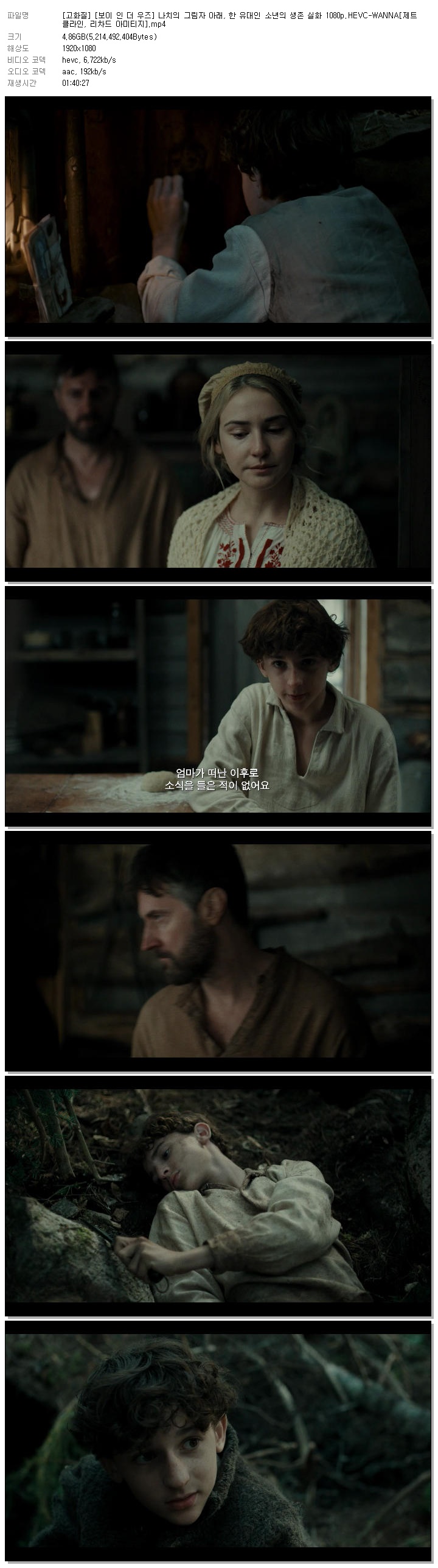 | [고화질] [보이 인 더 우즈] 나치의 그림자 아래, 한 유대인 소년의 생존 실화 1080p.HEVC-WANNA[제트 클라인, 리차드 아미티지].mp4 | 4.9 G | 01:40:27 | 1920x1080 |