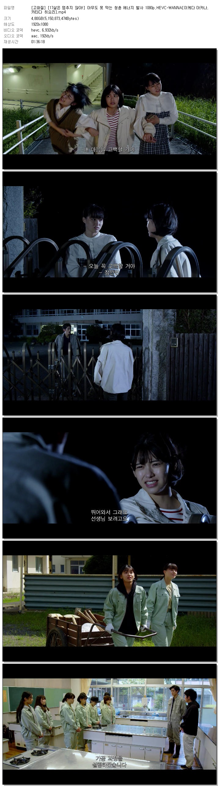 | [고화질] [17살은 멈추지 않아!] 아무도 못 막는 청춘 에너지 발사 1080p.HEVC-WANNA[이케다 아카나, 카타다 히요리].mp4 | 4.8 G | 01:36:18 | 1920x1080 |