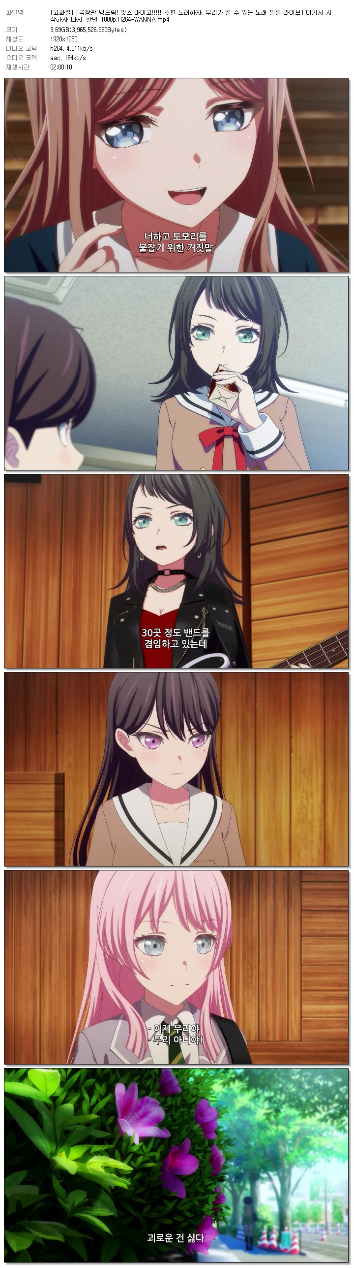 | [고화질] [극장판 뱅드림! 잇츠 마이고!!!!! 후편 노래하자, 우리가 될 수 있는 노래 필름 라이브] 여기서 시작하자 다시 한번 1080p.H264-WANNA.mp4 | 3.7 G | 02:00:10 | 1920x1080 |