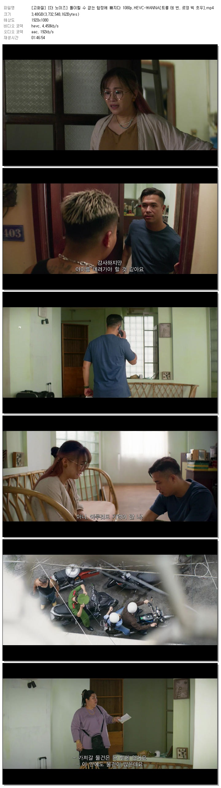 | [고화질] [더 노이즈] 돌이킬 수 없는 함정에 빠지다 1080p.HEVC-WANNA[트룽 테 빈, 르엉 빅 흐우].mp4 | 3.5 G | 01:46:54 | 1920x1080 |