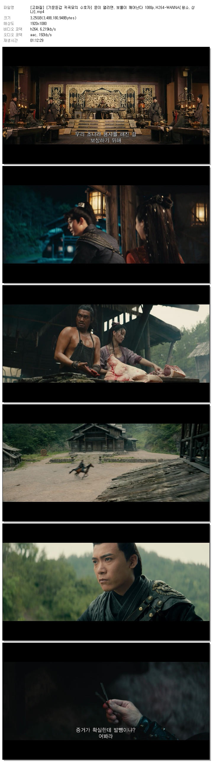 [고화질] [기문둔갑 귀곡묘의 수호자] 문이 열리면, 보물이 깨어난다 1080p.H264-WANNA[왕소, 상나].mp4 3.2 G 01:12:29 1920x1080
