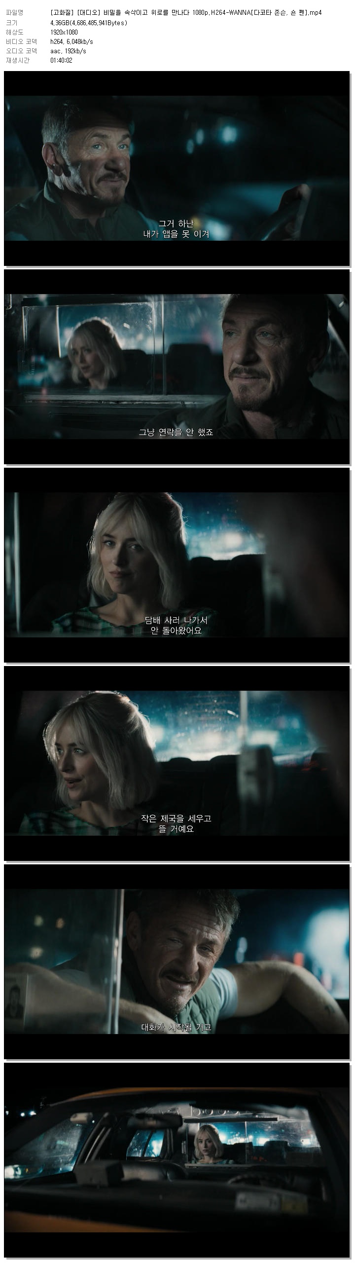 | [고화질] [대디오] 비밀을 속삭이고 위로를 만나다 1080p.H264-WANNA[다코타 존슨, 숀 펜].mp4 | 4.4 G | 01:40:02 | 1920x1080 |