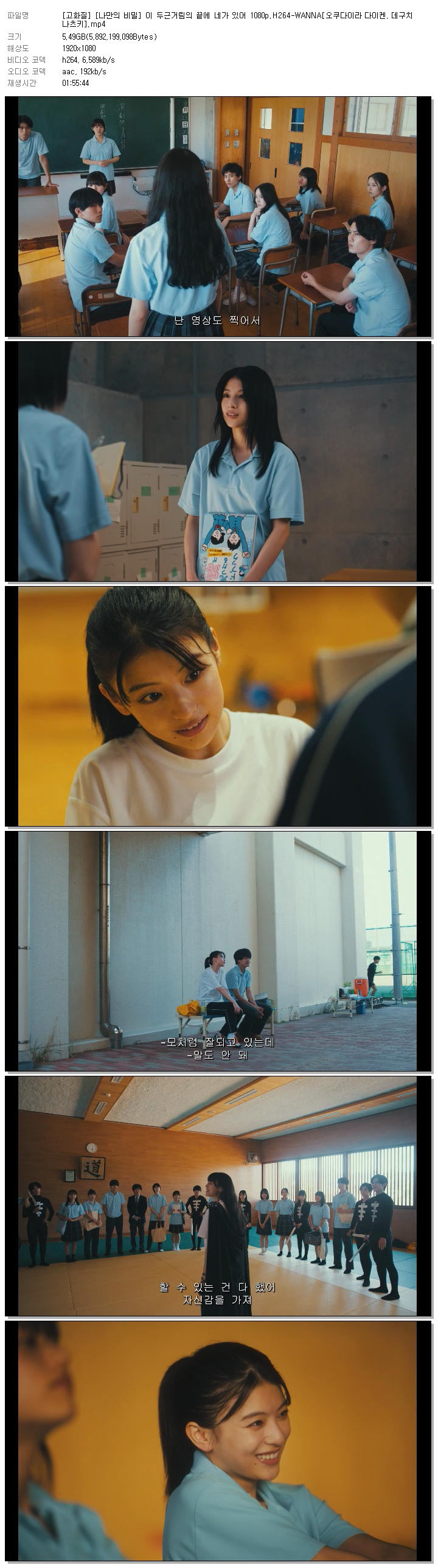 | [고화질] [나만의 비밀] 이 두근거림의 끝에 네가 있어 1080p.H264-WANNA[오쿠다이라 다이켄, 데구치 나츠키].mp4 | 5.5 G | 01:55:44 | 1920x1080 |