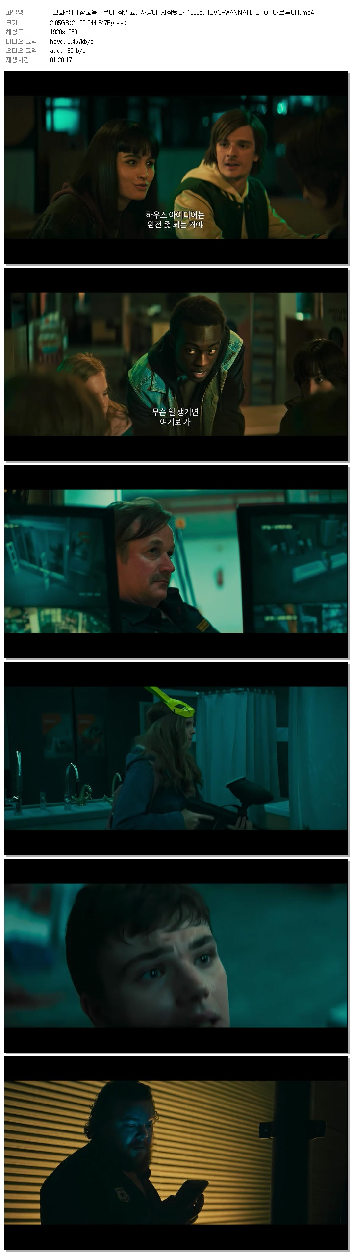 | [고화질] [참교육] 문이 잠기고, 사냥이 시작됐다 1080p.HEVC-WANNA[베니 O. 아르투어].mp4 | 2 G | 01:20:17 | 1920x1080 |