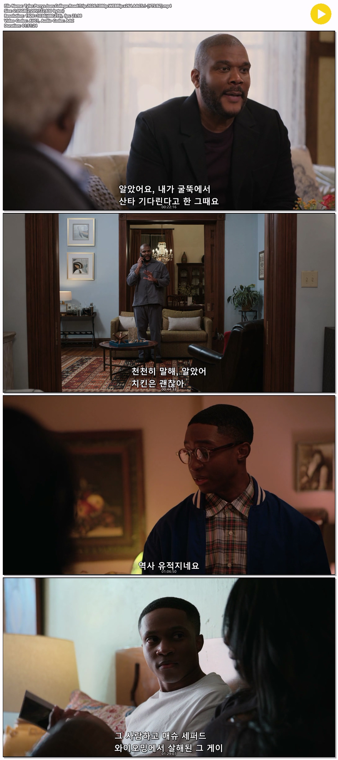 | Tyler.Perrys.Joes.College.Road.Trip.2026.1080p.WEBRip.x264.AAC5.1-[YTS.BZ].mp4 | 2.1 G | 01:51:24 | 1920x1080 |