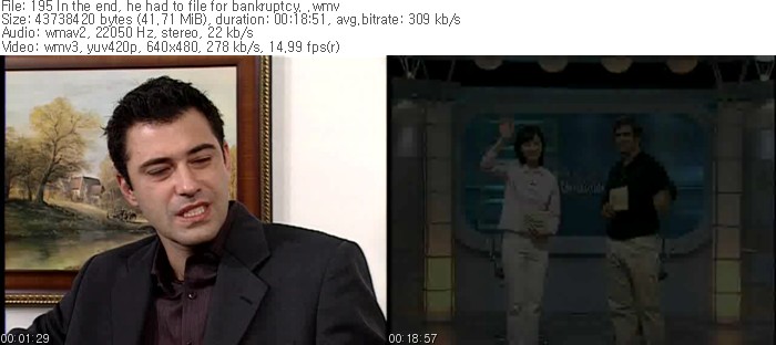 | 195 In the end, he had to file for bankruptcy. .wmv | 41.7 M | 00:18:56 | 800X600 |