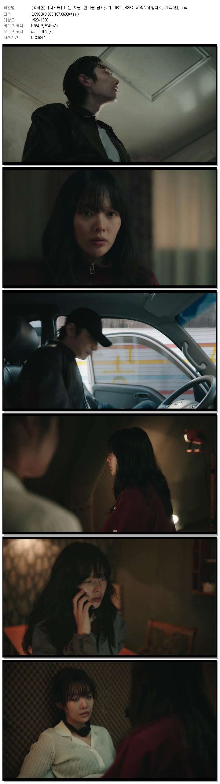 [고화질] [시스터] 나는 오늘, 언니를 납치했다 1080p.H264-WANNA[정지소, 이수혁].mp4 3.7 G 01:26:47 1920x1080
