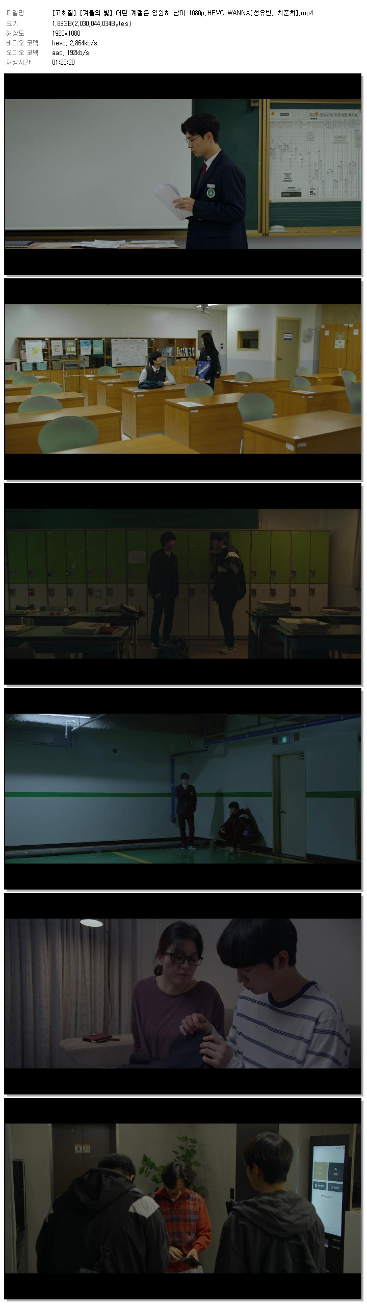 [고화질] [겨울의 빛] 어떤 계절은 영원히 남아 1080p.HEVC-WANNA[성유빈, 차준희].mp4 1.9 G 01:28:20 1920x1080
