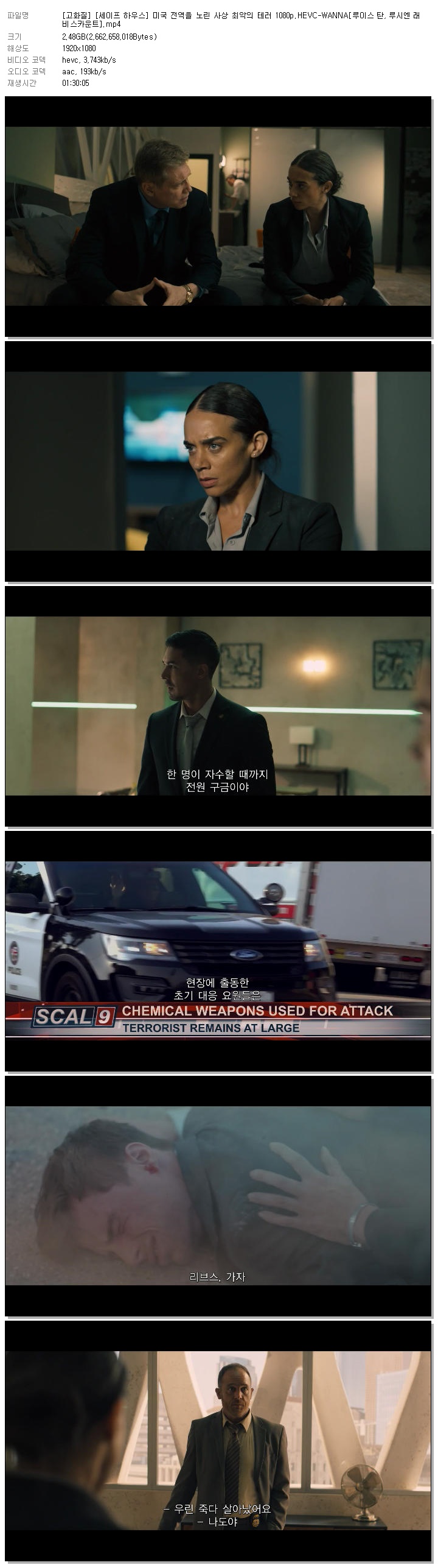 [고화질] [세이프 하우스] 미국 전역을 노린 사상 최악의 테러 1080p.HEVC-WANNA[루이스 탄, 루시엔 래비스카운트].mp4 2.5 G 01:30:05 1920x1080