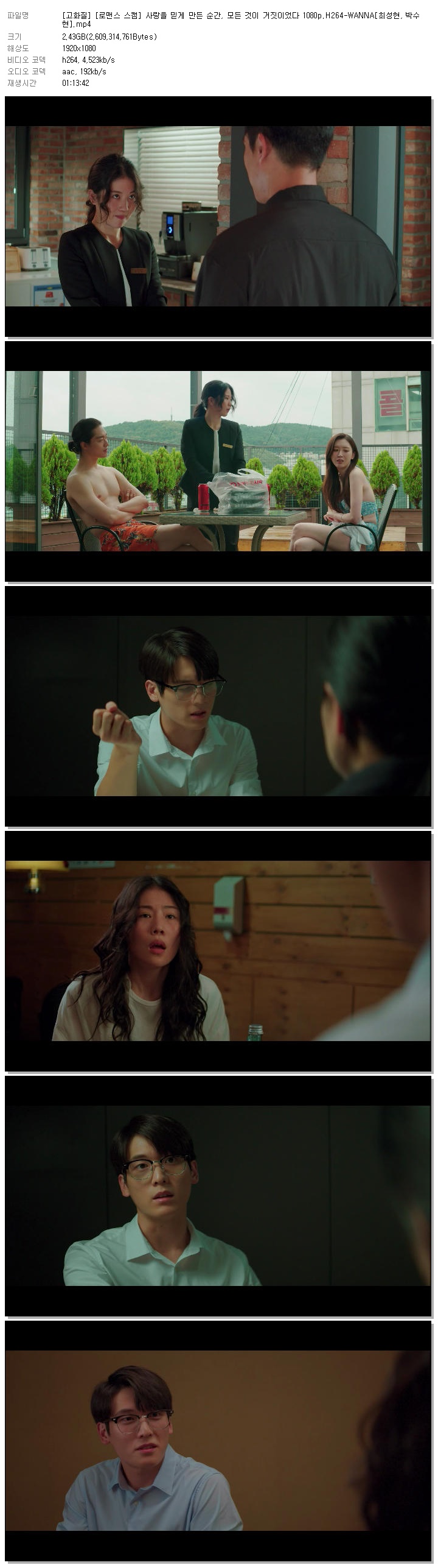 | [고화질] [로맨스 스캠] 사랑을 믿게 만든 순간, 모든 것이 거짓이었다 1080p.H264-WANNA[최성현, 박수현].mp4 | 2.4 G | 01:13:42 | 1920x1080 |