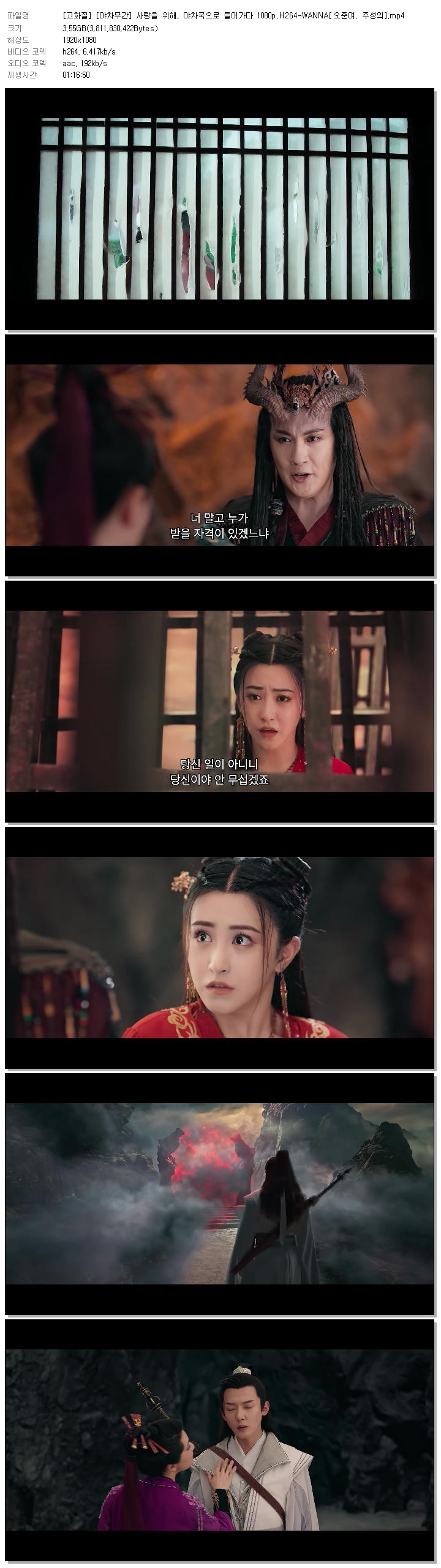 | [고화질] [야차무간] 사랑을 위해, 야차국으로 들어가다 1080p.H264-WANNA[오준여, 주성의].mp4 | 3.6 G | 01:16:50 | 1920x1080 |