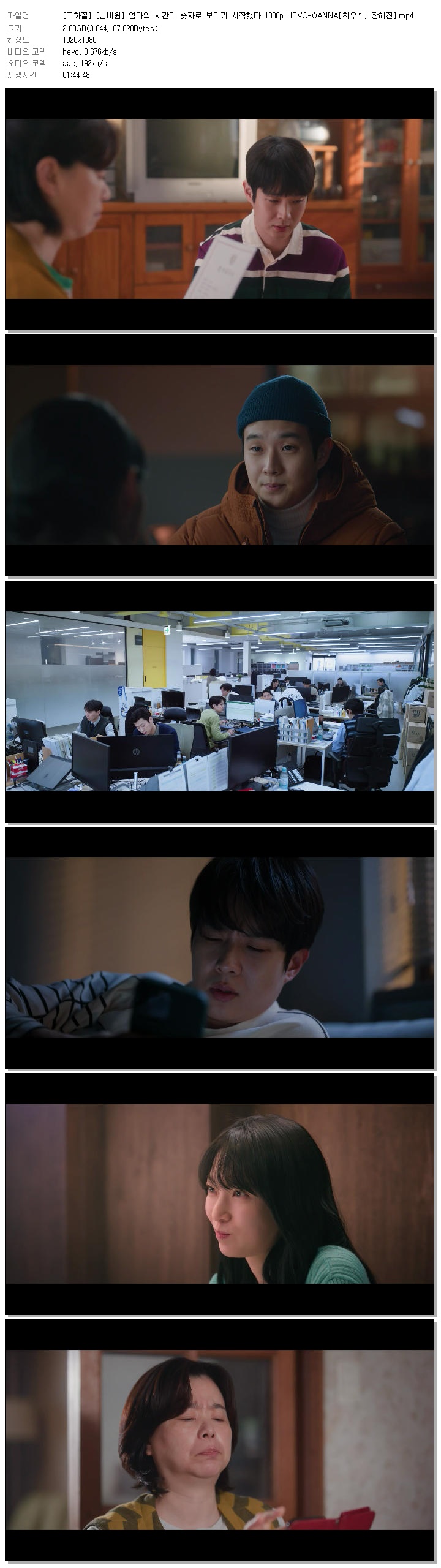 | [고화질] [넘버원] 엄마의 시간이 숫자로 보이기 시작했다 1080p.HEVC-WANNA[최우식, 장혜진].mp4 | 2.8 G | 01:44:48 | 1920x1080 |
