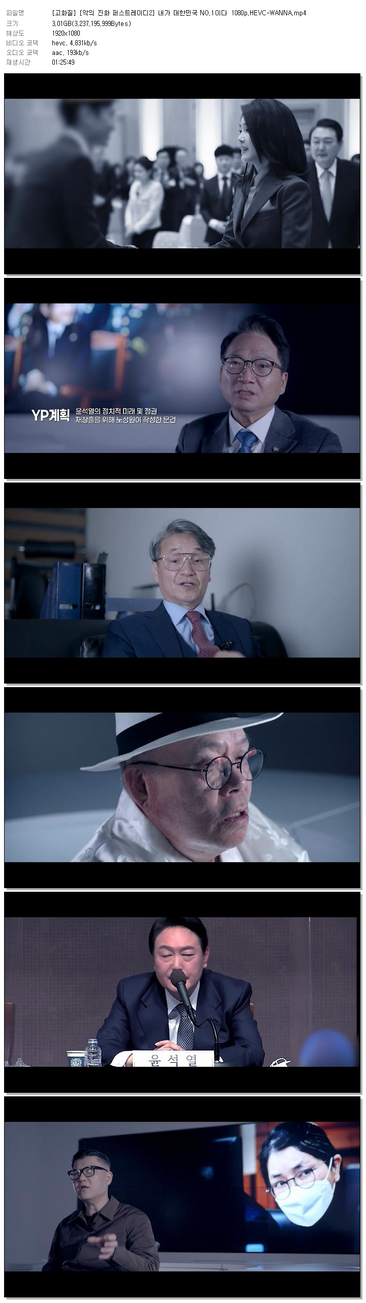 [고화질] [악의 진화 퍼스트레이디2] 내가 대한민국 NO.1이다 1080p.HEVC-WANNA.mp4 3 G 01:25:49 1920x1080