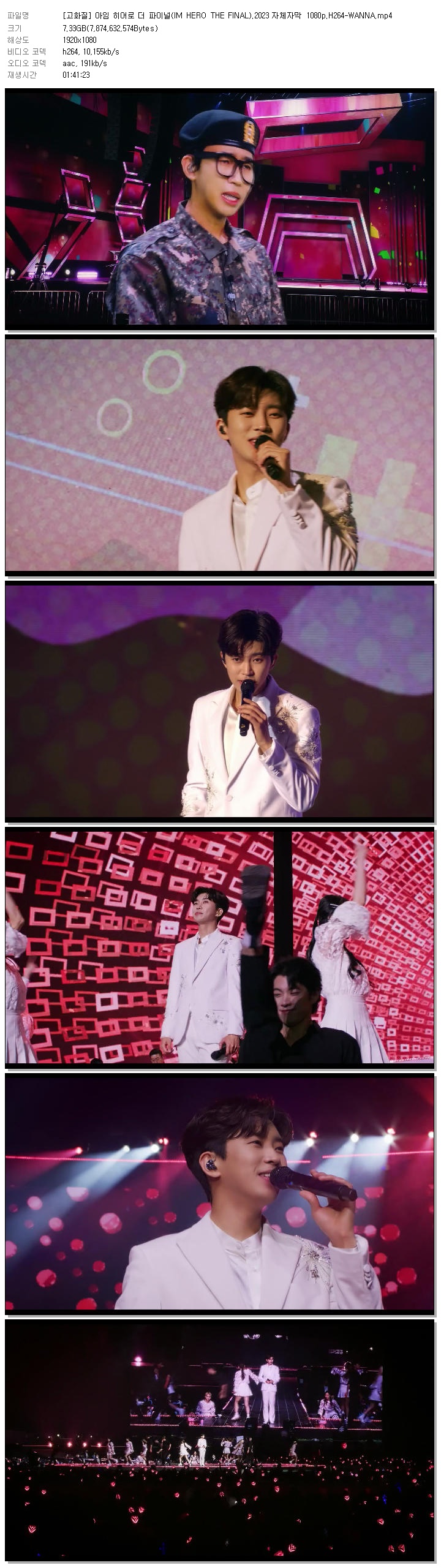 | [고화질] 아임 히어로 더 파이널(IM HERO THE FINAL).2023 자체자막 1080p.H264-WANNA.mp4 | 7.3 G | 01:41:23 | 1920x1080 |