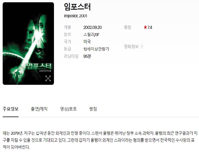 ico[ 임포스터 2002 ] 영웅적 과학자에서 사회의 적이 되버린 사람 ] 자체자막/