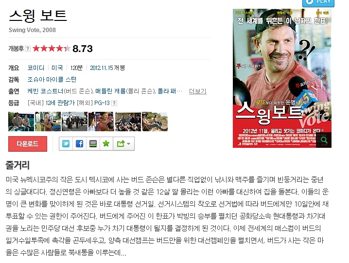 [ 스윙 보트 ] 케빈 코스트너,매들린 캐롤 출연 (평점8.73) 다시보기 토렌트