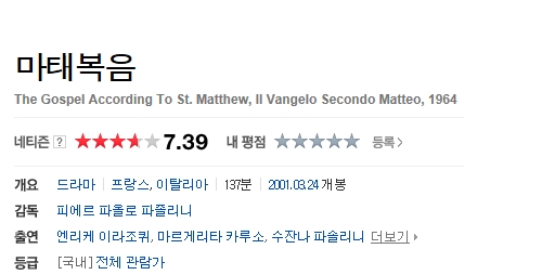 ico[고전] 마태복음 1964 - 피에르 파올로 파솔리니 감독작/