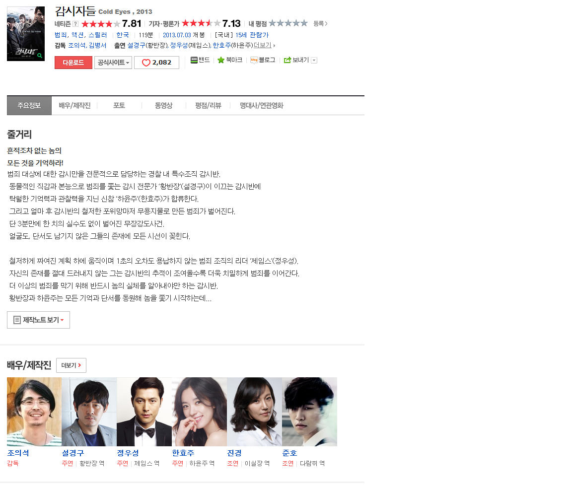 | 감시자들 Cold Eyes 2013 720p BluRay - 설경구,정우성,한효주.mkv | 4.4 G | - | 1280x720 |