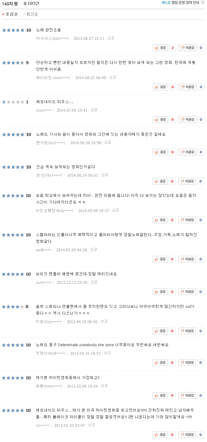 평점8.62 노래 너무 좋아요 :) 상큼한 하이틴 영화!
