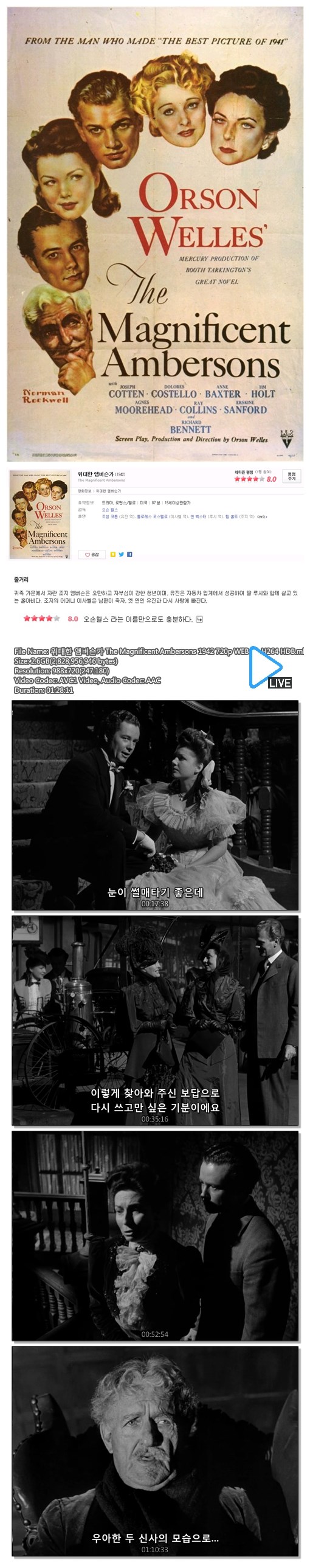 | 위대한 앰버슨가 The Magnificent Ambersons 1942 720p WEB DL H264 HDB.mkv | 2.6 G | - | 1280x720 |