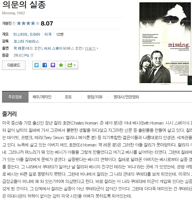 [의문의 실종] 군부 정권 집권하의 칠레 다시보기 토렌트