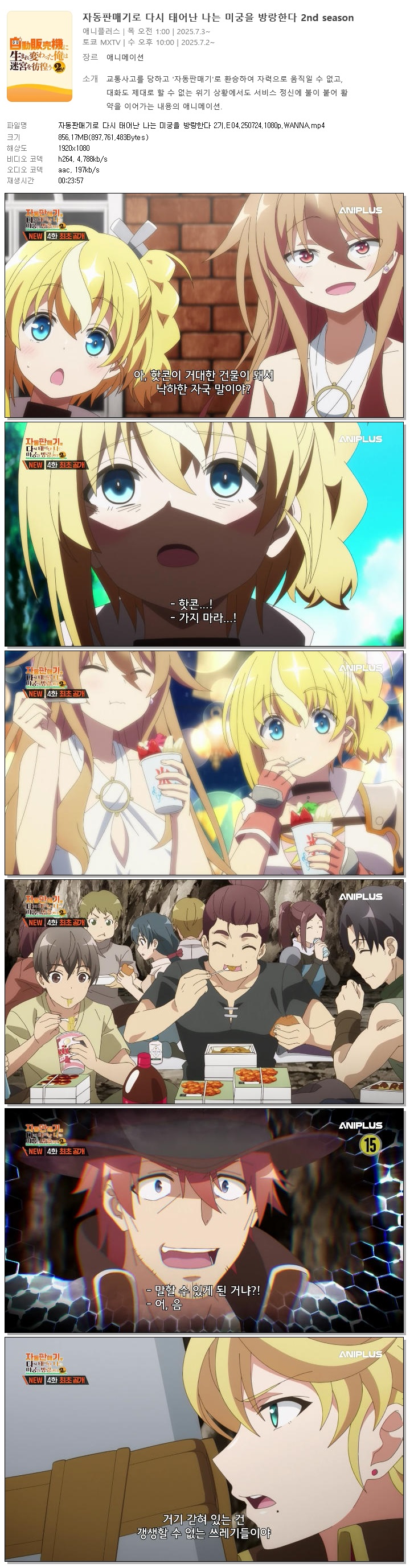 자동판매기로 다시 태어난 나는 미궁을 방랑한다 2기.E04.250724.1080p.WANNA.mp4 | 856.2 M | 00:23:57 | 1920x1080 |