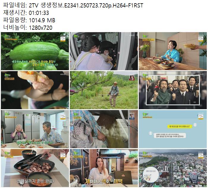 2TV 생생정보.E2341.250723.720p.H264-F1RST.mp4 | 1014.9 M | - | 1280x720 |