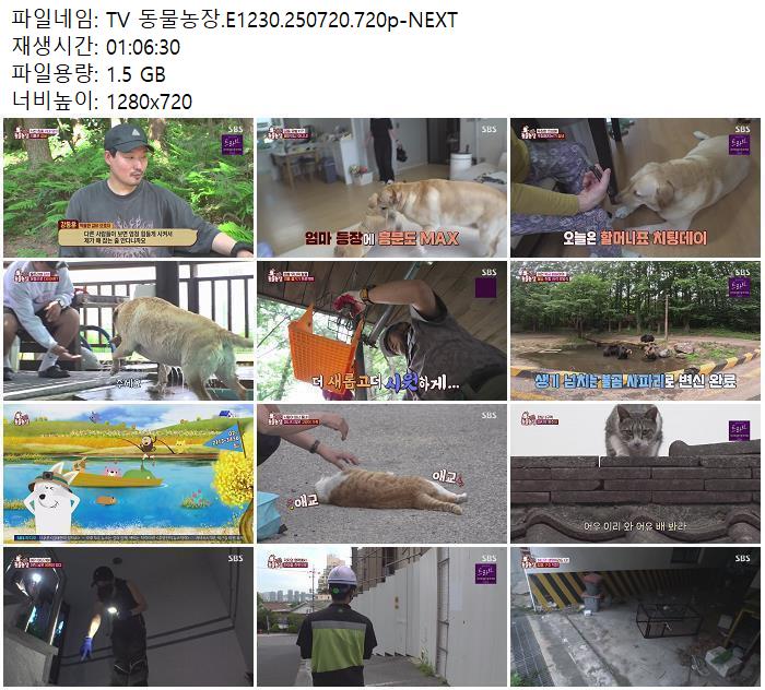 TV 동물농장.E1230.250720.720p-NEXT.mp4 | 1.5 G | - | 1280x720 |