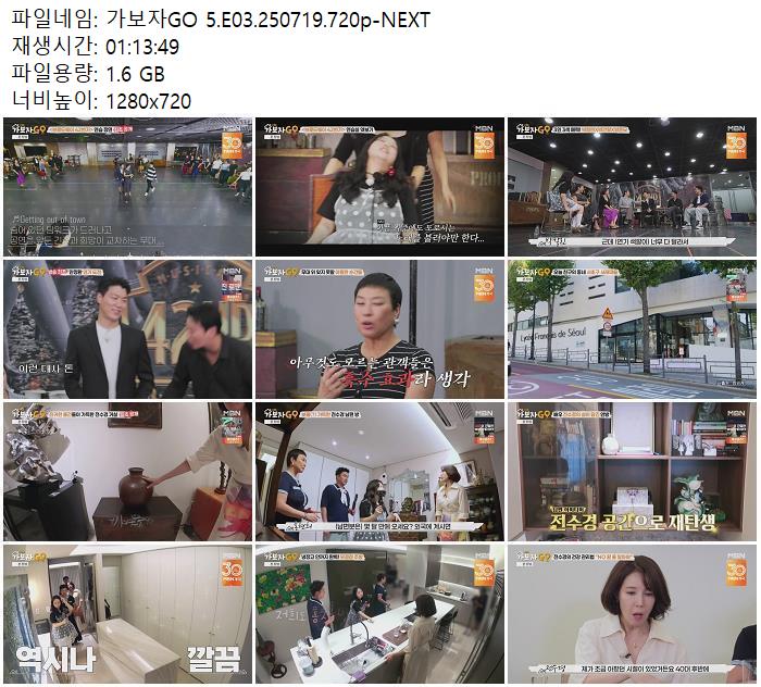 가보자GO 5.E03.250719.720p-NEXT.mp4 | 1.6 G | - | 1280x720 |