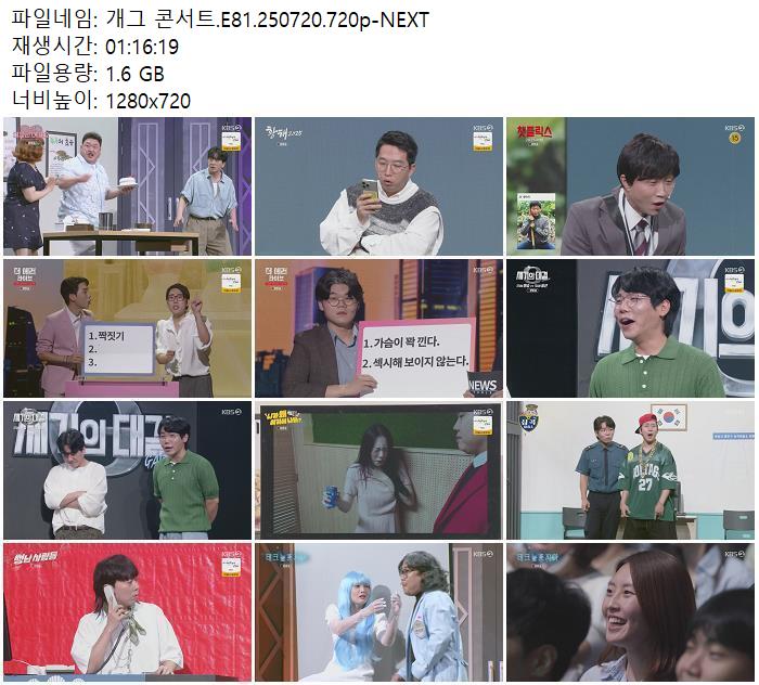 개그 콘서트.E81.250720.720p-NEXT.mp4 | 1.6 G | - | 1280x720 |