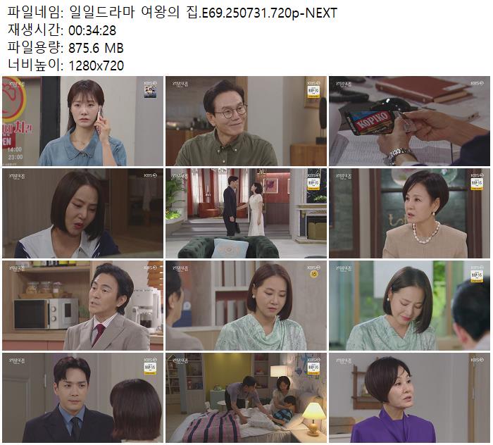 일일드라마 여왕의 집.E69.250731.720p-NEXT.mp4 | 875.6 M | - | 1280x720 |