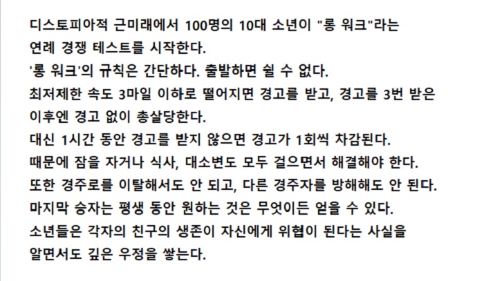 ico[롱 워크] 시속 3마일 속도를 유지하라 생존 스릴러/