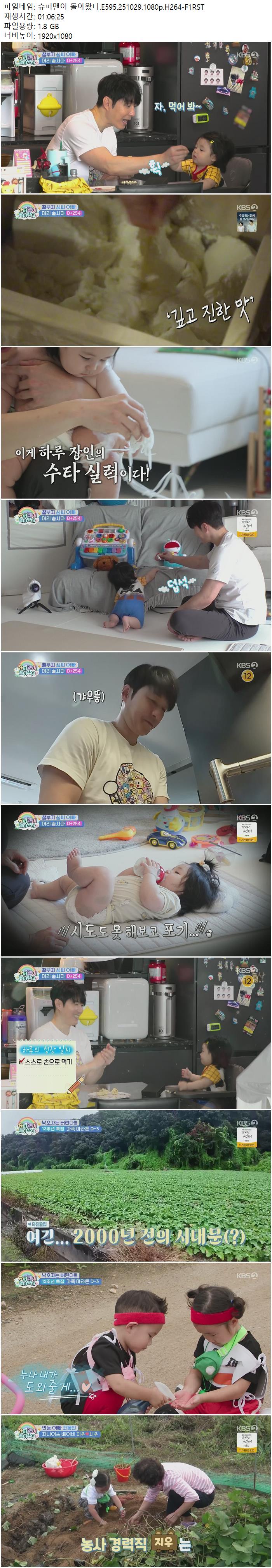| 슈퍼맨이 돌아왔다.E595.251029.1080p.H264-F1RST.mp4 | 1.8 G | - | 1920x1080 |