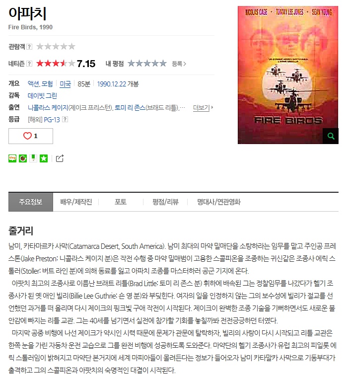 니콜라스 케이지 주연 아파치 Fire Birds (1990) 다시보기 토렌트