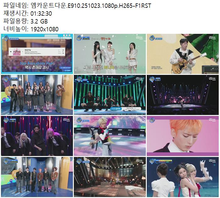 | 엠카운트다운.E910.251023.1080p.H265-F1RST.mp4 | 3.2 G | - | 1920x1080 |
